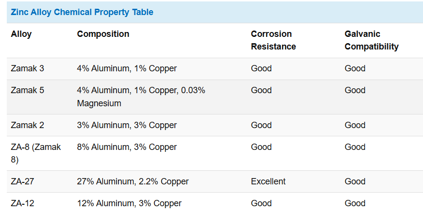 Zamak 2 | 3% Aluminum, 3% Copper | Good | Good |